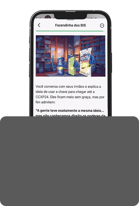 Após escolher o caminho, o jogador era lançado na narrativa e descobria como conquistar pistas para ganhar ingressos da CCXP. Uma mistura de RPG, storytelling e objetivos reais que guiavam cada decisão dentro da jornada.